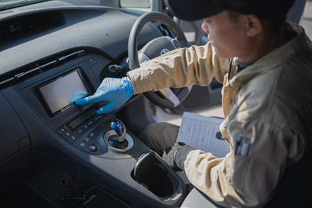 メルセデス・ベンツPDI業務*は、最高水準の安全性、快適性、走行性能、美しさを、最高の状態でお客様のもとへお届けするために、高い技術を持った作業員が入念な点検・整備を施し、日本の品質要求基準や法的要件を満たします。専門のトレーニングを受けた品質検査員により一台一台を徹底的にチェックし、高品質な車両の整備をしています。