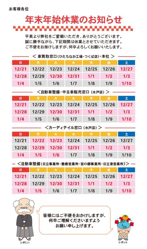 年末年始休業のお知らせ